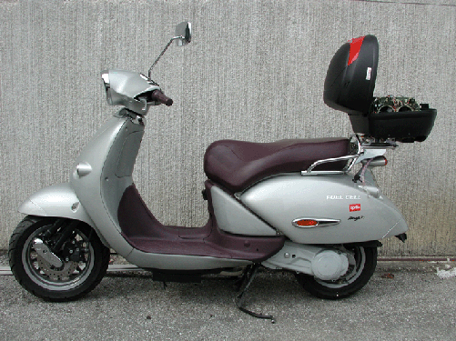 der 2001 sogar einen der "Invention of the Year"-Awards des Time Magazines gewann. Mahattan Scietifics entwickelt zusammen mit Aprilia Brennstoffzellen-Fahrzeuge, um das Interesse von Herstellern an Brennstoffzellen-Antrieben zu wecken. Im Unternehmen ist man überzeugt, dass BZ-Roller gegenüber batterie- oder benzinbetriebenen Rollern durchaus konkurrenzfähig ist. Manhattan Scientifics' Chief Operating Officer Jack Harrod: "Schätzungsweise 100 Millionen motorisierte Zweiräder sind weltweit in Benutzung, der Großteil davon in der überfällten Städten Asiens. ... Luftverschmutzung und Krach sind die größten Probleme in diesen Städten. ... Wir sind überzeugt, unser schadstoffloser BZ-Roller eine wichtige Rolle spielen kann, um diese Situation zu verbessern." CEO Marvin Maslow: "Experten sagen, es wird noch mindestens 10 Jahre dauern, bis eine wirkliche Massenproduktion von BZ-Autos anlaufen wird. Aber das muß nicht für andere, kleinerer Formen von Brenstoffzellen-betriebenen Personentransportmitteln gelten." |