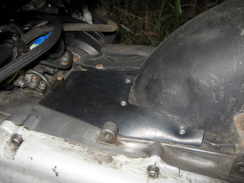 Das hintere Schutz"blech" müsst Ihr eventuell ein Stück einschneiden weil der Vergaser tiefer hängt. Ich habe mir als Ersatz ein Stück 2mm Gummi zurecht geschnitten. |