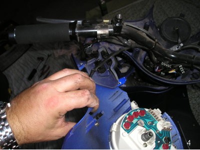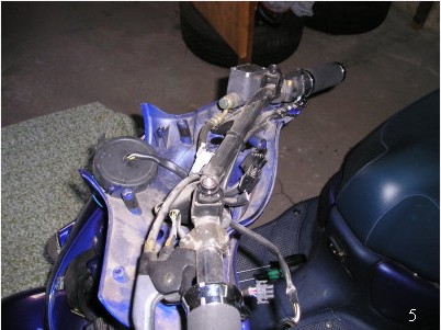 | Das Kabel des Fernlichtschalters kann man nach umkippen der Verkleidung gut abziehen... | So sieht also meine arme Habbi ohne obere Verkleidung aus...schnief... |