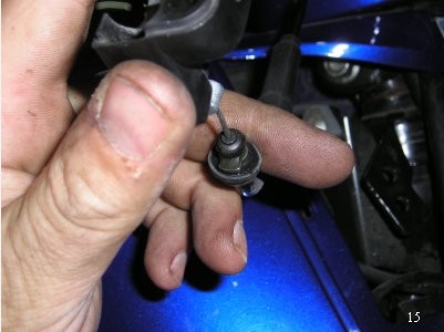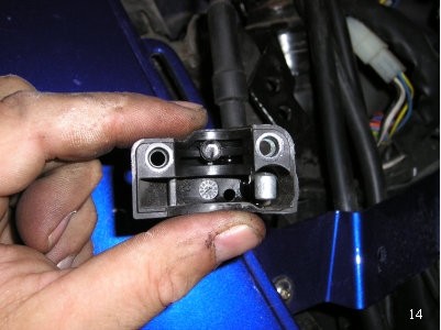 Anmerkung : Den Gasgriff kriegt man ganz einfach wieder an dieselbe Stelle, da das untere Halterungsteil mit einer Nase in ein Loch im Lenker fixiert wird |