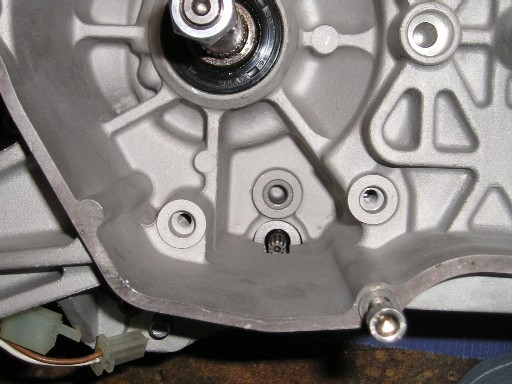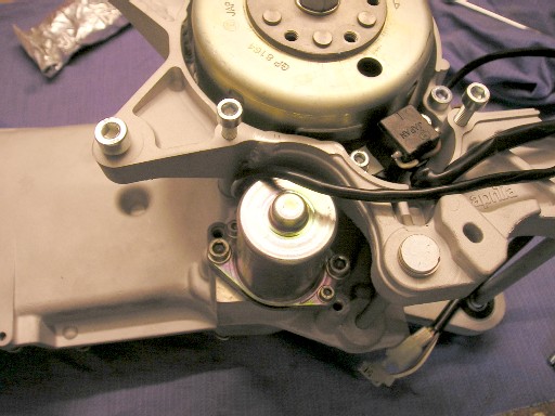 | ...da ist er auch schon drin ! | Auf der linken Seite des Motors kann man das Ritzel des Anlassermotors erkennen... |