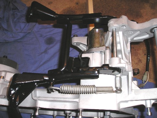 | Jetzt wenden wir uns hurtig dem Hauptständer zu... | ...der mit der Feder und der Welle montiert wird (Sch*** Job). |