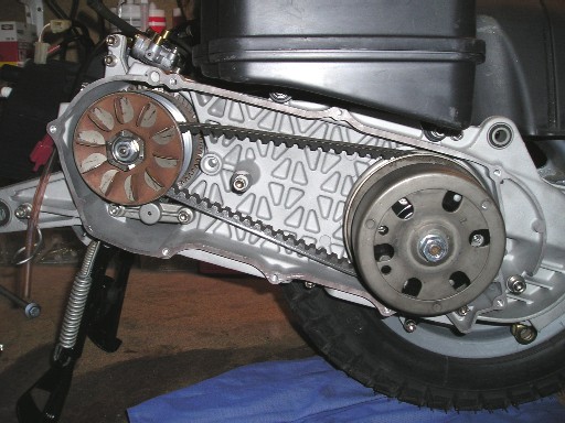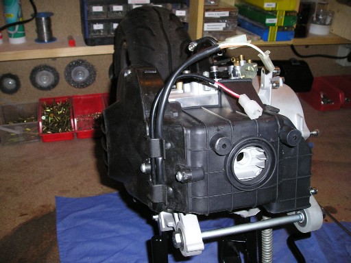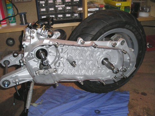 | Jetzt fehlt eigentlich nur noch der Auspuff ! | Dann kann man sich beruhigt dem Antrieb zuwenden, sprich der Variomatik und des Wandlers... |
