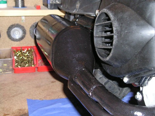 | Dann noch die Verkleidungen drangepfriemelt und schon sieht's SO aus... | Das hintere Schutzblech ist mit 2 Schrauben am Gehäuse festgeschraubt und mit einer Schraube mitsamt dem Auspuff. |