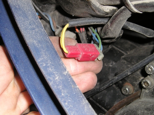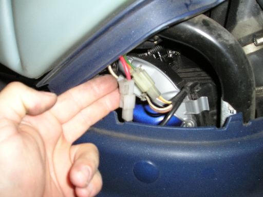 | Jetzt geht es los, den Zündkerzenstecker abziehen... | ...dann die 3 Stecker zur Stromversorgung des Motors abklemmen. |
