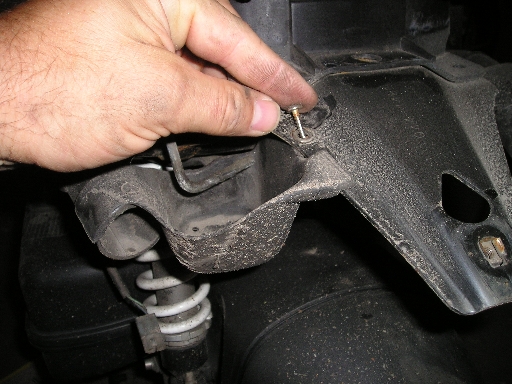 | Danach kann man die Klemmschraube abbbauen. | Am vorderen Teil des Motors ist der Bremszug nochmal mitsamt den Ablaufschläuchen verschraubt. Weg damit... |