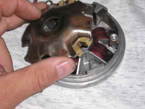 Nun habt ihr freien Zugang auf die Variatorrollen, die letztendlich die Gewichte in der Vario darstellen Auch hier gilt, alle Teile gründlich zu säubern und