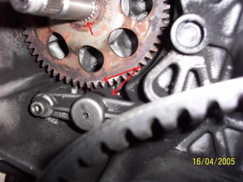 Achtet bitte darauf, ob das Anlasser-Kettenrad auf der Welle richtig sitzt und das Anlasserritzel sich nicht verkantet (Pfeile unten) |